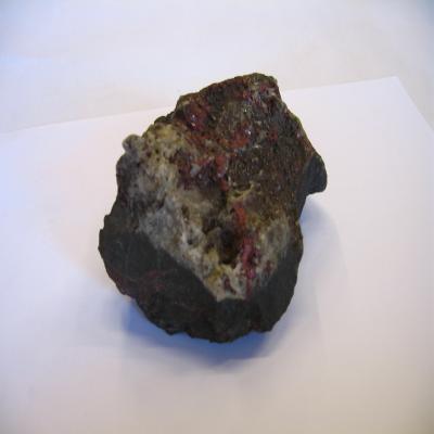 Esfarelita acaramelada cristalizada en cristales cúbicos, diseminada en roca metamórfica.