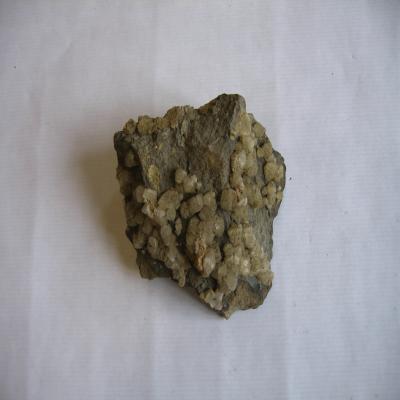 Cinabrio cristalizado en cristales tabulares trigonales (rojo cochinilla) sobre roca afanítica.