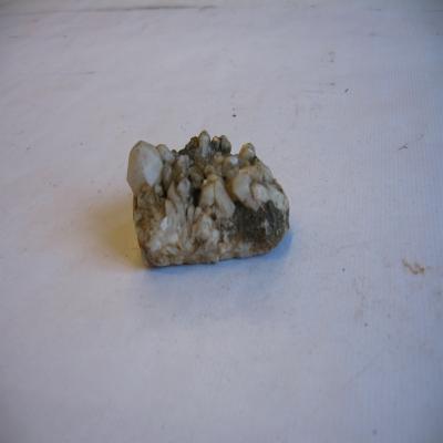 Hematites micáceo (negro metálico intenso) cristalizado junto a pequeños cristales de calcita (blancos).