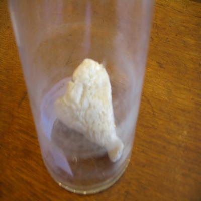 En bote de cristal. Etiqueta interior blanca a ordenador (de las que se hicieron para el 150 aniv. En 1995), con la siguiente inscripción: "Gabinete Cardenal Cisneros. Colección de Espongiarios" y debajo a bolígrafo "Sycon".