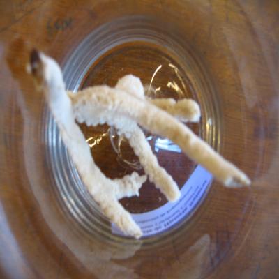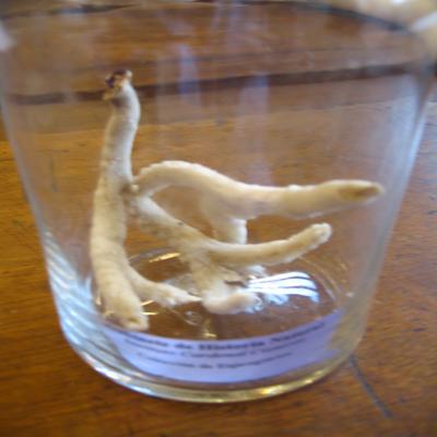 2 ejemplares o dos brazos de porífero de forma ramificada. Podría tratarse de Chalina??.Una de las piezas (ICC3-ZOO-INV-002.1)consta de un brazo que se ramifica en dos en el extremos (uno de los extremos está un poco deteriorado); el otro consta de un brazo (002.2) que se ramifica en dos y posteriormente cada uno de estos brazos vuelve a dividirse en 2, quedando al final 4 ramificaciones.Color blanquecino.