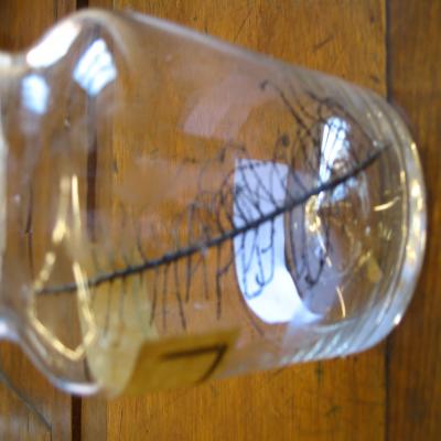 En bote de cristal. Con dos etiquetas: