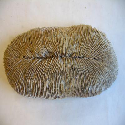 Se trata del esqueleto calcáreo externo de una forma solitaria (polípero) con tabiques esqueléticos (escleroseptos)(característica del orden). Debido a su gran tamaño se pueden apreciar la columnilla y los sinaptículos además de los escleroseptos. Color balquecino.