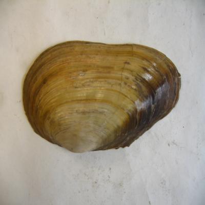 Valva oval-alargada, grande, inequilateral, con uno de los lados más puntiagudo. Es baja, con el umbo bajo. Se observan líneas de creciemiento concéntricas. Superficie brillante y lisa, color pardo. El interior es nacarado.