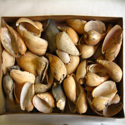 Caja grande con más de treinta ejemplares de varios grupos de gasterópodos. Son ejemplares de tamaño grande. Lo que más hay es Cymbium sp., algún Conus sp., escafándrido y un cásido.