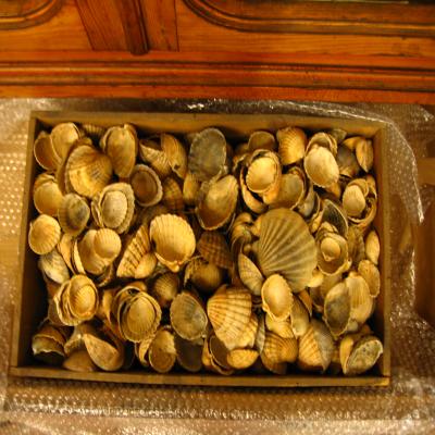 Molusco. Clase Pelecypoda Caja mixta de bivalvos de diferentes grupos. Más de setente. El grupo claramente predominante son los cárdidos, anque también hay pectínidos y algún venérido. En general son conchas grandes.