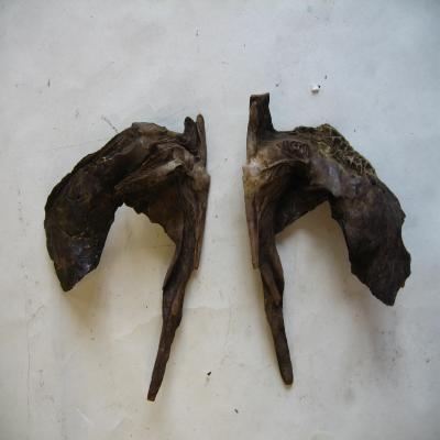 Las dos valvas del mismo ejemplar, casi iguales, y asimétricas. Grandes dimensiones, con una forma irregular con bordes plegados. Color negro. Sólo una impresión muscular. Parece estar formada por varias capas superpuestas.