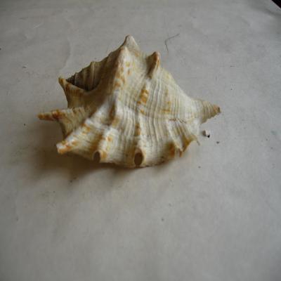 Concha grande, gruesa y pesada con la última espira hinchada y otra corta. Proyecciones muy desarrolladas alrededor del borde oral. Ápice muy puntiagudo y todas las espiras anguladas. Última espira con costillas en espiral irregulares y con protuberancias, acabando las más gruesas con proyecciones curvadas (son seis). Las seis proyecciones y el canal sifonal (largo) completamente abiertas en lo que se conserva. Blanca con motas pardas, sobre todo en las proyecciones.