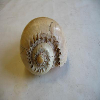 Superficie algo deteriorada, con una grieta que va de las primeras espiras a la zona sifonal. Borde externo de la boca un poco roto en algunas zonas.