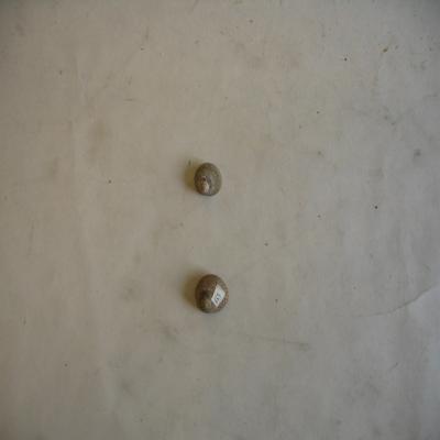 Dos conchas cónica-redondeadas, con espiras abombadas y gran espira terminal. Superficie lisa en la pequeña, con finas costillas espirales en la más grande, y con estrías axiales. Borde de la boca liso. Color claro con puntitos pardo-violáceos. Boca redondeada, interior nacarado en la grande.