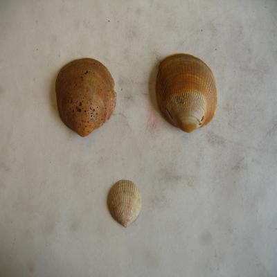 La valva más pequeña tiene una inscripción a bolígrafo en su cara interna "Pectunculus".