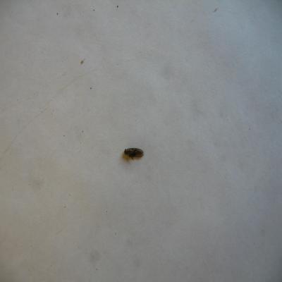 Mosca parduzca, con las alas plegadas. Tiene alguna pata rota. Alas transparentes, membranosas.