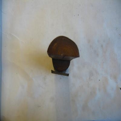 Fragmento de tronco de laurel. Pesado. Hacia la mitad de la pieza, se ha cortado longitudinalmente y transversalmente, de modo que la mitad del tronco está completa, y la otra sólo conserva la mitad longitudinal. Este corte permite ver el interior de la madera.