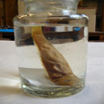Podría ser uno de los 67 peces nombrados en 1877-78 que formaban parte de la colección de zoología, por lo que podría corresponder al Catálogo ganador de la medalla de oro de la Exposición Universal de París de ese año.