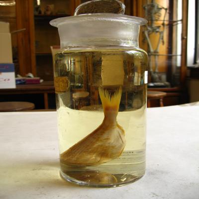 Podría ser uno de los 67 peces nombrados en 1877-78 que formaban parte de la colección de zoología, por lo que podría corresponder al Catálogo ganador de la medalla de oro de la Exposición Universal de París de ese año.