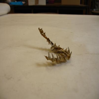 Podría corresponder a una de las dos mandíbulas de un pez de la familia de los tiburones adquirida por donación en el curso 1863-64.