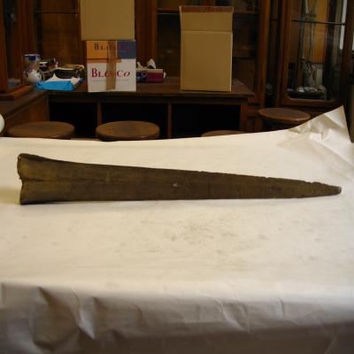 Rostro alargado del pez espada, de grandes dimensiones.Textura áspera, forma de espada. Color grisáceo.