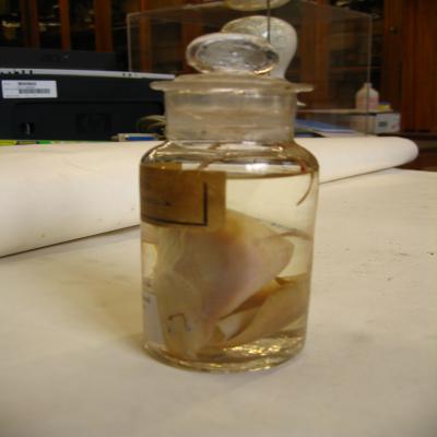 Podría ser uno de los 67 peces nombrados en 1877-78 que formaban parte de la colección de zoología, por lo que podría corresponder al Catálogo ganador de la medalla de oro de la Exposición Universal de París de ese año.
