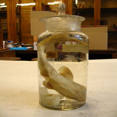 Podría ser uno de los 67 peces nombrados en 1877-78 que formaban parte de la colección de zoología, por lo que podría corresponder al Catálogo ganador de la medalla de oro de la Exposición Universal de París de ese año.