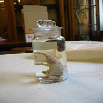 Podría corresponde a la pequeña colección de reptiles y algunos otros animales conservados en espíritu de vino, remitido de Fernando Póo y regalado por el Sr. D. José Muñoz y Gaviria, Vizconde de San Javier en el curso (1861-62).