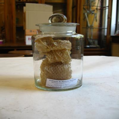 En un bote de cristal, en seco, con una etiqueta interior blanca a ordenador (de las que se hicieron para el 150 aniv. En 1995), con inscripción: "Gabinete de Historia Natural. Instituto Cardenal Cisneros. Colección de Reptiles", y con bolígrafo "Malpolon monspessulanus (Culebra bastarda)".