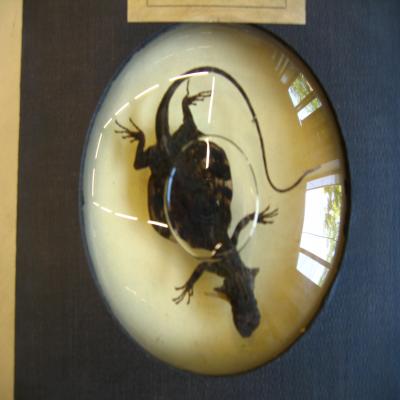 Podría corresponde a la pequeña colección de reptiles y algunos otros animales conservados en espíritu de vino, remitido de Fernando Póo y regalado por el Sr. D. José Muñoz y Gaviria, Vizconde de San Javier en el curso (1861-62).
