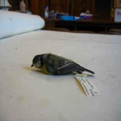 El ejemplar tiene unida a la pata una etiqueta con inscripción a bolígrafo "M.Gª.LLORENS. Parus caeruleus. Macho. Herrerillo. 29.IX.929. Tórtola. Guadalajara.".