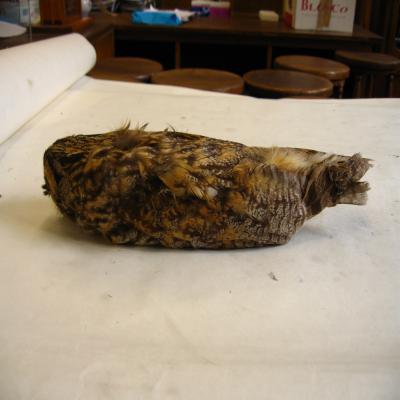 Podría pertenecer a la colección de animales disecados procedente de los dobles del Museo de Ciencias Naturales de Madrid, o de los que preparaban en aquellos años los alumnos de la Cátedra de Taxidermia, colocados en este Gabinete en 1848.