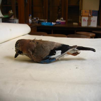 Podría pertenecer a la colección de animales disecados procedente de los dobles del Museo de Ciencias Naturales de Madrid, o de los que preparaban en aquellos años los alumnos de la Cátedra de Taxidermia, colocados en este Gabinete en 1848.