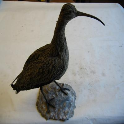 -Una etiqueta grande y blanca, suelta, cerca del ejemplar, con inscripción a máquina "NUMENIUS ARCUATA (Zarapito)".