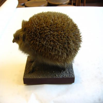 Un ejemplar naturalizado. Lo más significativo es el revestimiento de púas que cubre el cuerpo dorsalmente. El largo hocico lleva una dentadura provista de afilados dientes. Las púas presentan franjas claras y negras alternativas (que se aprecia débilemente en este ejemplar), Ventralmente pelaje grisáceo.