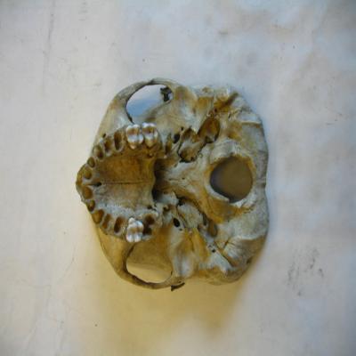 Faltan la gran matoría de dientes, y están rotos los dos huesos temporales.
