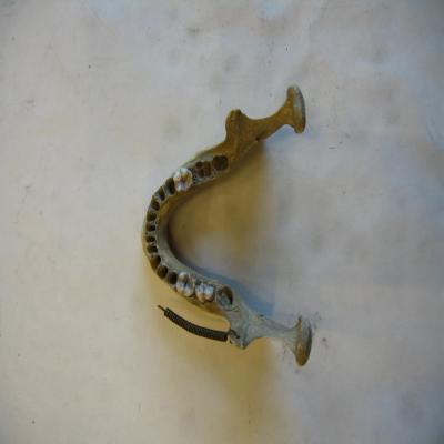 -Mandíbula (ICC4-ZOO-1391.3): Le sucede lo mismo, sólo conserva tres molares, dos a un lado y el tercero al otro. Tiene un enganche metálico unido a un lado.