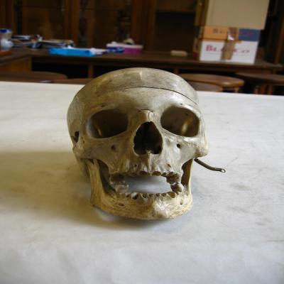 Podría corresponder a una de las cuatro calaveras compradas por el instituto en el curso académico 1863-64, para el estudio de las razas humanas. Entonces también podría ser una de las siete calaveras que formaban parte de la colección de zoología según las memorias del curso 1877-78.