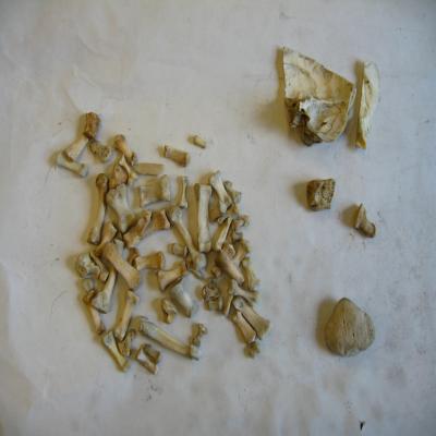 -Dos huesos que parecen del cráneo, uno parece el hueso temporal.