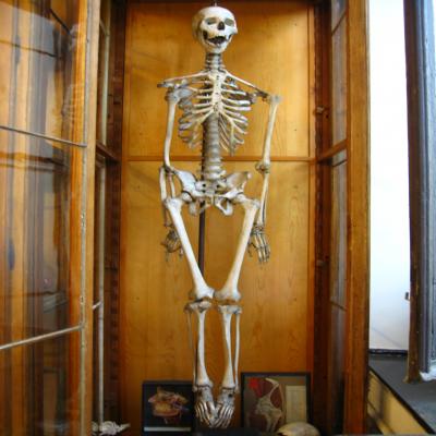 -Esqueleto humano completo articulado (ICC4-ZOO-1400.1): Está en muy buen estado. Cada pieza se articula con las otras a través de varillas metálicas. Sólo faltan unas cuantas falanges de algunos desdos de pies y manos, un diente incisivo y la rótula izquierda; lo demás parece estar completo.