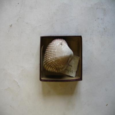 En una cajita, con dos etiquetas dentro con inscripción a bolígrafo: "CARDIUM", y la otra "Cardium norvegicum Splender".