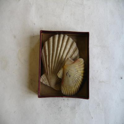 En una cajita, con una etiqueta dentro con inscripción a bolígrafo: "PECTEN". El ejemplar unido, tiene escrito a bolígrafo en una de sus caras externas el número "23".