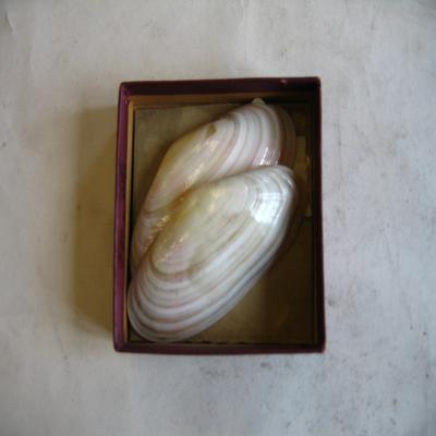 En una cajita, con una etiqueta dentro con inscripción a bolígrafo: "Tellina virgata" y otra también con inscripción a bolígrafo: "TELLINA".
