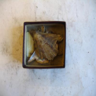 En una cajita, con una etiqueta dentro con inscripción a bolígrafo: "PTERIA".