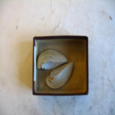 Las dos valvas del mismo ejemplar. Concha que cerrada tiene forma de corazón, con las valvas aplastadas anteroposteriormente. Vértice alto. Costillas poderosas, escamadas, la superior con pequeñas púas. Borde de la concha con muescas. Color claro, interior también blanco.