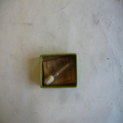 Dentro de un pequeño bote de cristal tapado con un algodón. Este a su vez está dentro de una cajita de cartón. Dentro de la caja una etiqueta antigua con inscripción a lápiz: "70. Mactra ebi…? Lamark. Palma".