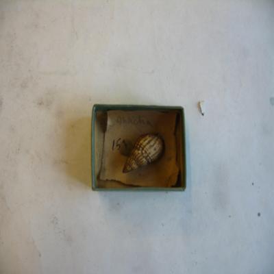 En una cajita, con una etiqueta antigua con inscripción a lápiz: "153. Mactra. Murcia?".
