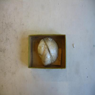 En una cajita, con una etiqueta antigua con inscripción a bolígrafo poco legible: "Anomia ephippum Linné 95 España".