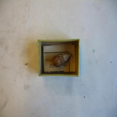 En una cajita, con una etiqueta antigua con inscripción a máquina: "31. INSTITUTO <<JOSÉ DE ACOSTA>>. Museo Nacional de Ciencias Naturales. MADRID (6). Colecciones suministradas a los Establecimientos Oficiales de Enseñanza. Gén. Latirusa. Espec. turritus Gmel. Localidad:"