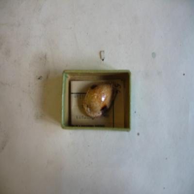 En una cajita, con una etiqueta antigua con inscripción a máquina: "56. INSTITUTO <<JOSÉ DE ACOSTA>>. Museo Nacional de Ciencias Naturales. MADRID (6). Colecciones suministradas a los Establecimientos Oficiales de Enseñanza. Gén. Cypraea. Espec. onyx Linné Localidad: Basilan"
