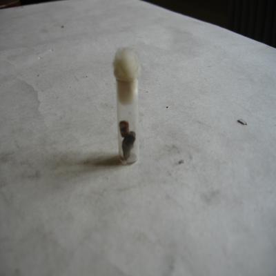 En un bote pequeño de cristal. Y este a su vez dentro de una cajita, con etiqueta antigua con inscripción a bolígrafo: "Mytilus anonimus. Poli. 129. España".