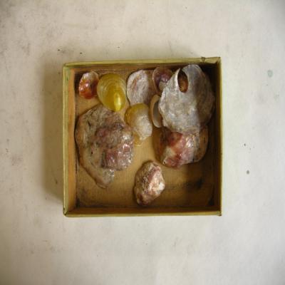Molusco. Clase Pelecypoda. Subcl Pteriomorphia. Fam. Anomiidae Más de diez valvas, asimétricas. La superior es abombada, laminar, gruesa, redondeada, con líneas concéntricas de crecimiento, umbo central. La otra es cóncava, redondeada, muy fina y translúcida, a veces con un agujero ovalado en la zona cercana al umbo. Se observan también líneas de crecimiento concéntricas; superficie como laminada. Colores del blanco al violáceo.