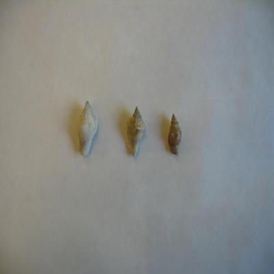 En una cajita, con un papel con inscripción a bolígrafo: "Strombus labiatus. 3 ejemplares. Posiblemente especie labiatus. Pg 144 nº10".