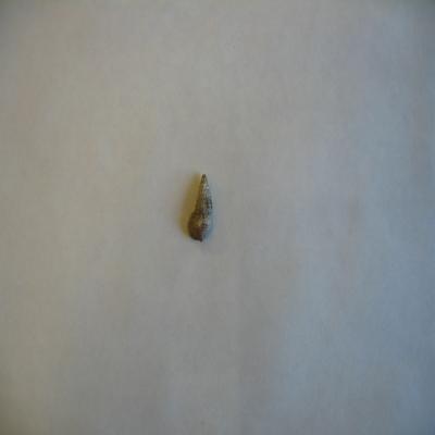 En una cajita, con un papel con inscripción a bolígrafo: "Terebralia sulcata. 1 ejemplar. Fam: Potminidae. Cerithiacea.Taenioglossa [Mesogastropoda]. Pag 134, lam 12, nº2".